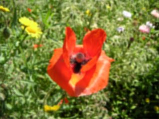 For larger radius (such as you can try in a painting program that has gaussian blur), you need larger kernels. The naive convolution implementation like used in this tutorial would become too slow in practice for large radius gaussian blurs. But there are solutions to that: using the Fourier Transform as described in the Fourier Transform tutorial of this series, or an even faster approximation: The fast approximation involves doing multiple box blurs in a row, three in a row approximated it already very well. How to do a fast box blur is explained in the previous chapter. The reason this works is that a gaussian distribution arises naturally from a sum of other processes.