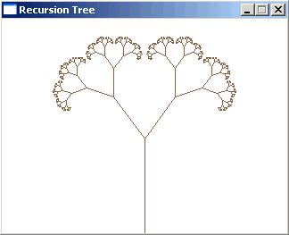 recursionTree(w / 2, h - 1, 0, -1, size, 0); //This function will draw a single line and call itself a few times, creating a tree